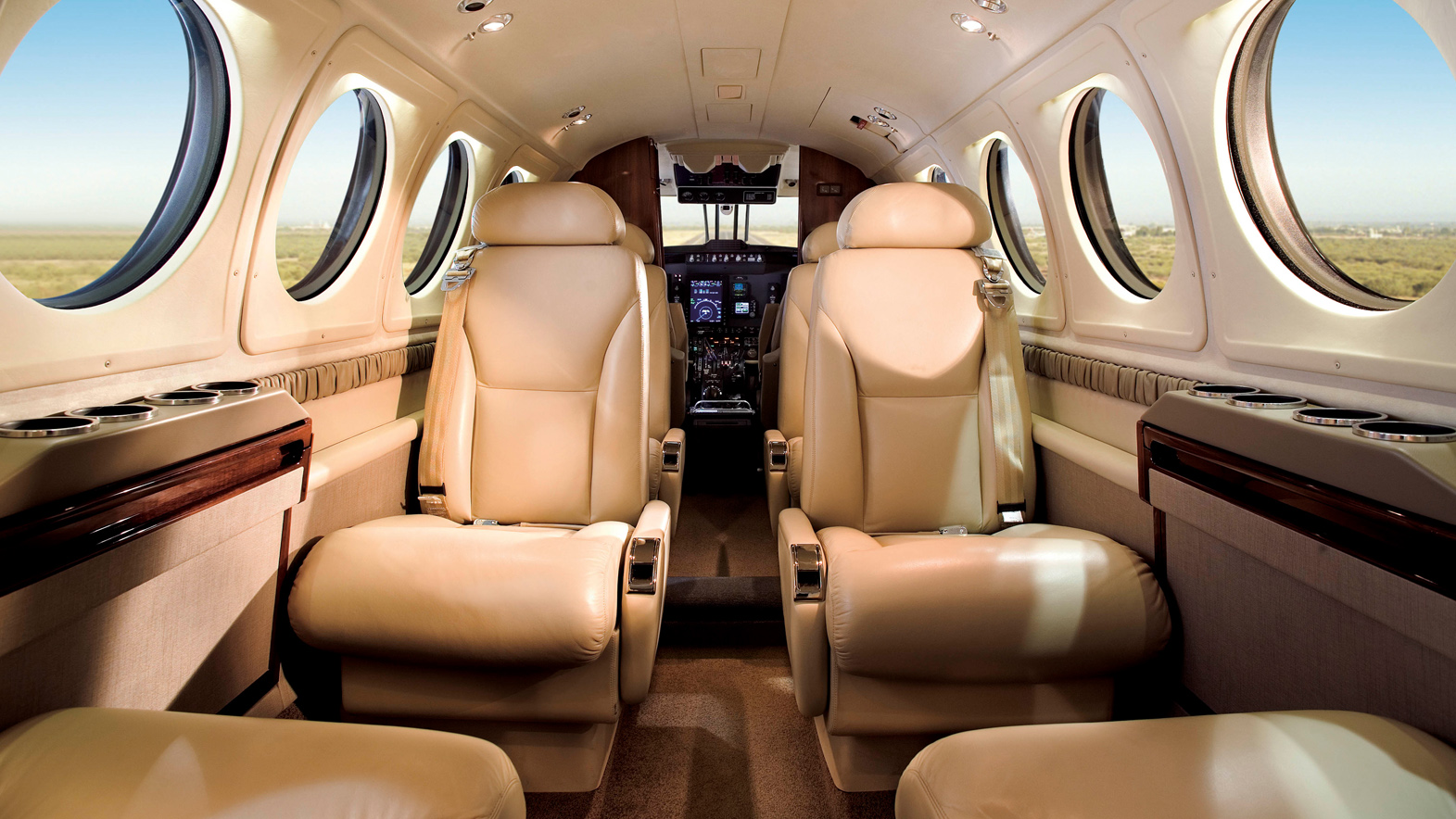 Die Beech 200 mit Druckkabine bietet Platz für 6–10 Personen und verfügt über ein besonders leises Getriebe im Vergleich zu vielen gängigen Business-Jets. Sie besticht durch eine geräumige und hochwertig eingerichtete Passagierkabine mit ergonomisch geformten Sitzen, die höchsten Komfort gewährleisten. Dank des einzigartigen quadratisch-ovalen Kabinendesigns genießen Sie auf Ihren Privatflüge außerdem deutlich mehr Bewegungsfreiheit für Kopf und Schultern.