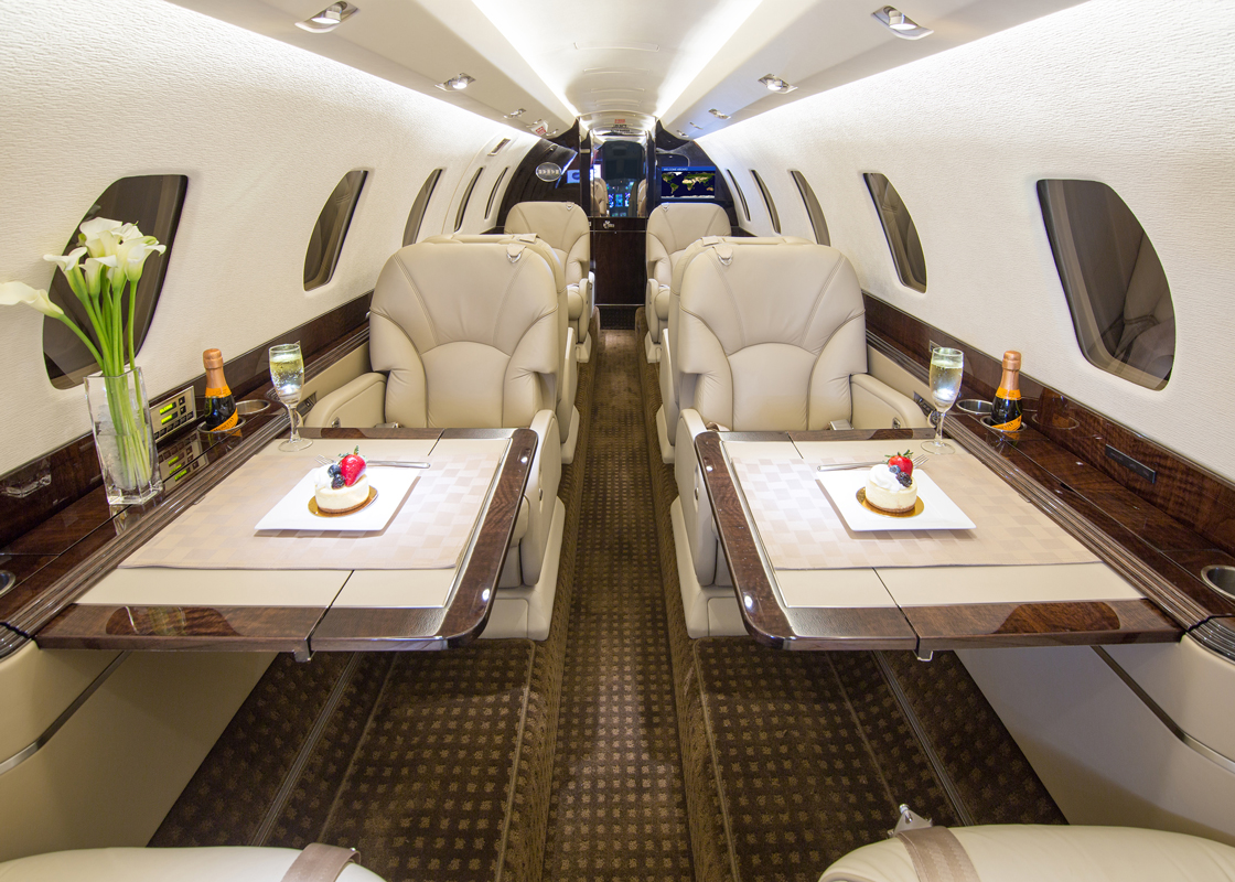 Bequeme Ledersitze, eine geräumige Kabine und ein modernes Bordunterhaltungssystem schaffen ideale Voraussetzungen für stressfreies Reisen. Neben einer luxuriösen Ausstattung überzeugt die Citation X außerdem durch herausragende Performance, sodass Sie sich jederzeit auf eine schnelle und planmäßige Ankunft verlassen können.