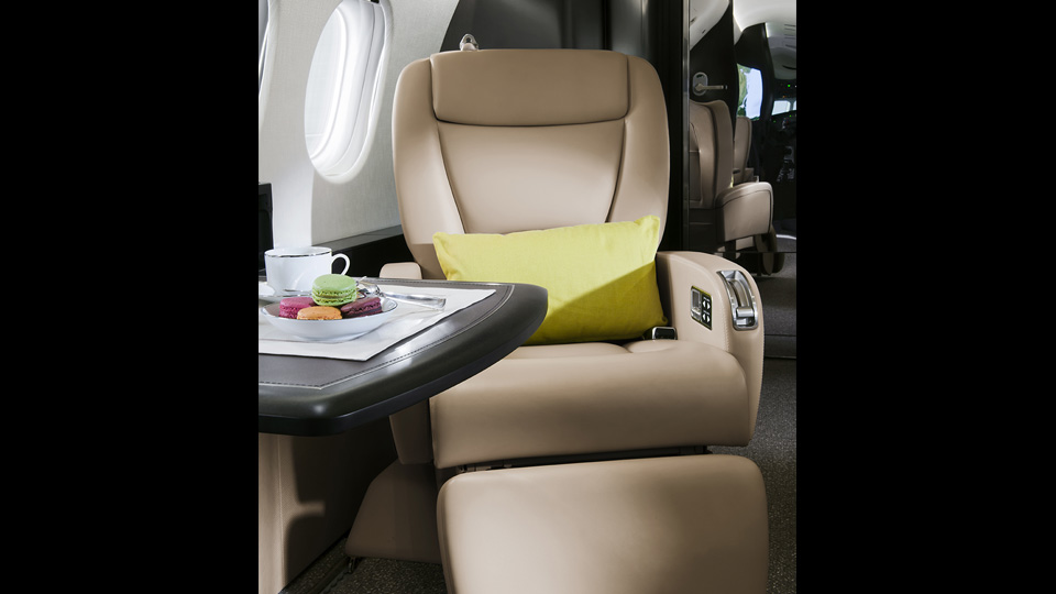 Die luxuriöse und großzügige Flugkabine bietet Platz für 11 bis 15 Passagiere. In den komfortablen Ledersitzen fühlen Sie sich sofort wie zu Hause – und merken kaum, dass Sie fliegen: Geschäftsreisende schätzen insbesondere den niedrigen Kabinendruck der Falcon 7X.