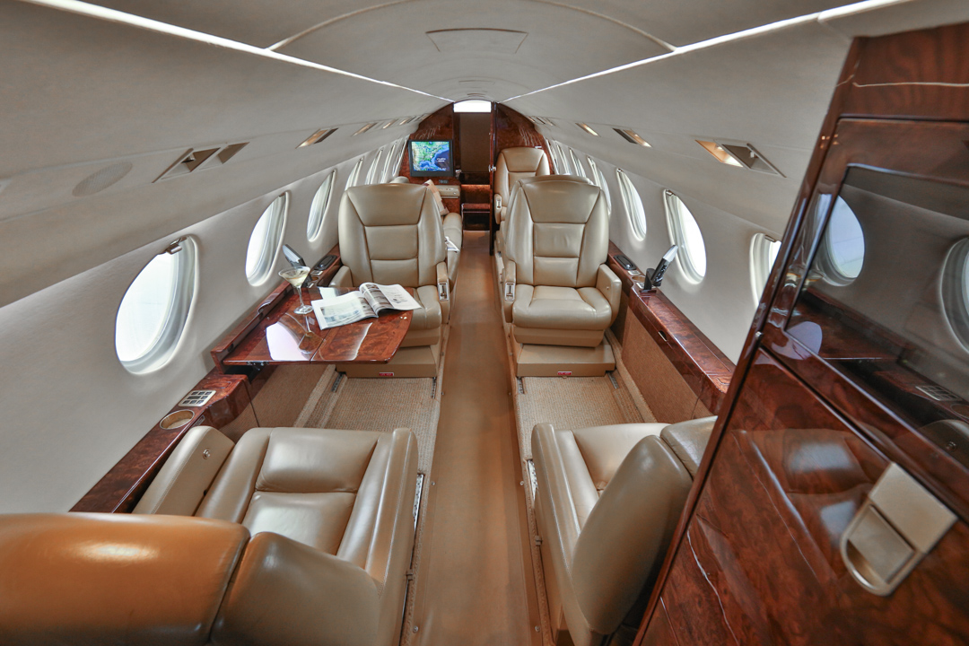 Auch in der Kabine erfüllt die Dassault Falcon 50 die Ansprüche anspruchsvoller Fluggäste: Moderne Bordtechnologie, luxuriöse Ausstattung und acht bis zehn komfortable Sitzplätze sorgen für einen entspannten und produktiven Flug auf Ihrer individuellen Reise.